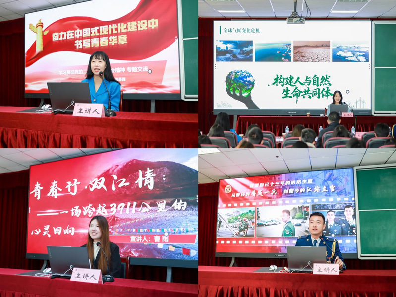 宣讲活动中,四位来自不同领域的宣讲团成员结合自身工作实践与成长经历,从多元视角展开分享。武汉工程大学马克思主义学院教师董慧茜系统阐释了“十五五”时期的战略定位与发展路径,深刻剖析其作为中国式现代化关键阶段的承上启下作用,帮助青年学子明晰时代发展脉络与历史使命;碳排放权登记结算公司主管刘昕罗以“碳小二”的生动实践案例,直观展现全国碳市场在推动绿色转型、落实“双碳”目标中的桥梁纽带作用,让学子们真切感受国家推进美丽中国建设的坚定决心与实际成效;武汉工商学院学生曹雨深情讲述自身援藏支教的亲身经历,通过长江经济带到雅江峡谷的实践对照,生动诠释了青年在“铸牢中华民族共同体意识”、助力乡村振兴与教育振兴中的责任担当,展现了中国式现代化建设的鲜活实践;黄石市消防救援支队幸福消防站政治指导员陈新锐分享了十三载逆火而行的坚守历程,以“人民至上,生命至上”的消防精神,传递了扎根岗位、无私奉献的职业信念,引发学子强烈共鸣。