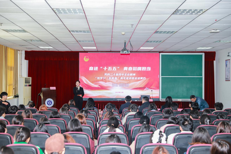 本网讯 奋进“十五五”,青春挺膺担当。11月25日,由共青团湖北省委主办、共青团黄石市委承办的党的二十届四中全会精神“悦学习・跃青春”青年宣讲活动在学校信息大楼报告厅开展。团省委宣传部干部赵雅佳、团市委副书记梅益明、团市委组织宣传部部长刘卉、校团委书记刘晓光出席活动,学校各学院学生骨干代表等共200余人齐聚现场,共同聆听宣讲、凝聚思想共识。