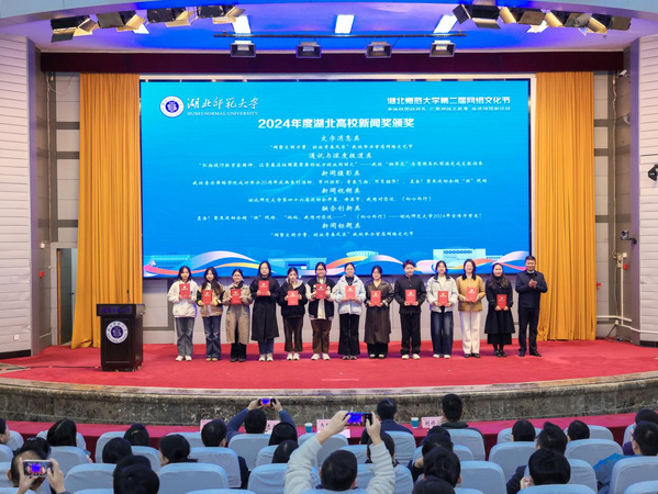 在颁奖环节,与会领导嘉宾分别为首届网络文化节优秀短微视频、优秀设计(美术、摄影、书法)、优秀立项选题、“新媒体账号评优”以及2024年度湖北高校新闻奖的获得者代表颁奖。现场气氛热烈,掌声不断,充分展示了学校在网络文化创作与传播领域的扎实根基与蓬勃活力。
