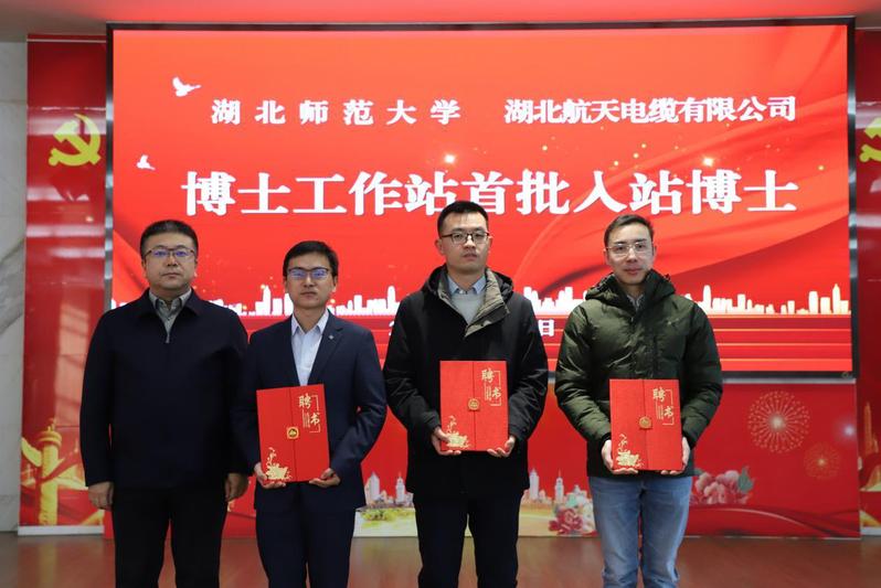 湖北师范大学党委常委、副校长胡艳军,航天电工集团党委委员、常务副总经理戈勇,湖北航天电缆有限公司党委书记、董事长王国志出席仪式。我校人工智能与计算机学院院长韩涛,科学研究与发展院副院长杨伦,首批入站博士代表潘敏、阮焱林、伍作徐、吴雪超等共同参加。仪式由航天电工集团党委委员、纪委书记陈建华主持。