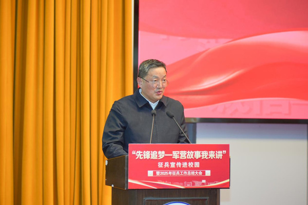 本网讯 12月5日下午,“先锋追梦——军营故事我来讲”征兵宣传进校园暨2025年征兵工作总结大会在教育大楼报告厅举行。市委常委、市征兵和民兵工作领导小组常务副组长、黄石军分区大校司令员贾宇峰,黄石港区人武部上校部长南小勇,校党委副书记、校长雷儒金出席活动。党政办、宣传部、学工部、人武部、教务处、财务处、招就处、团委等单位负责人,各学院分管学生工作负责人、负责人武工作辅导员及学生代表参加活动。