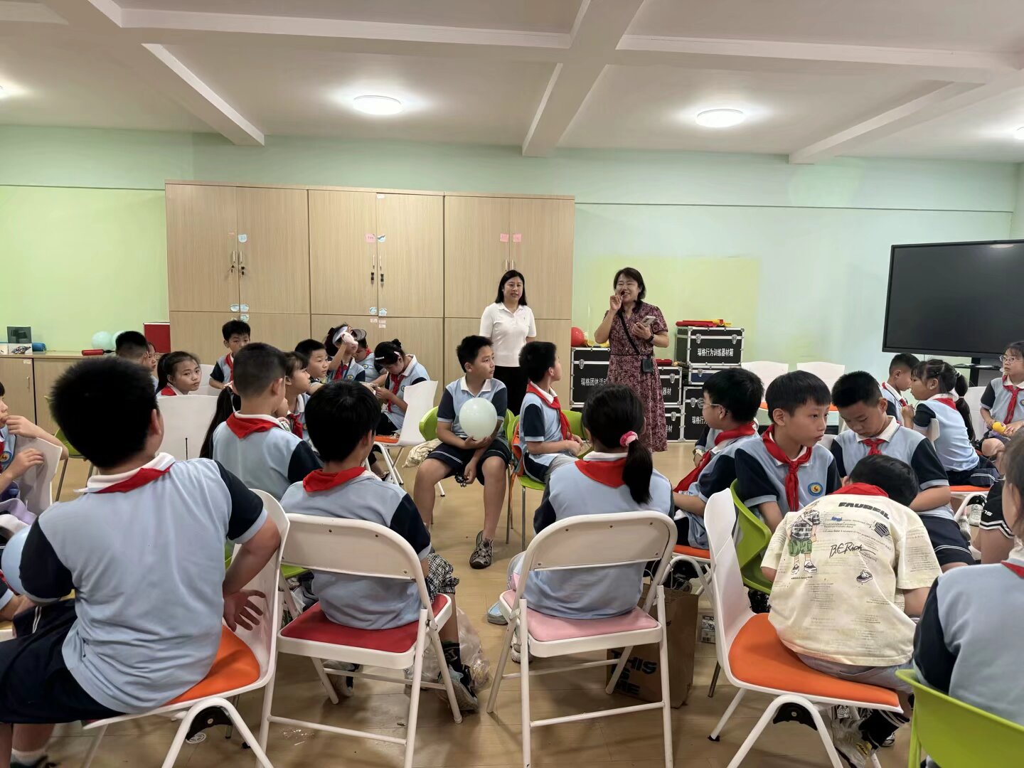 快乐传递,友谊升温。“传递快乐球”活动同样精彩纷呈。各组同学紧密围成圆圈,用手轻拍气球完成一次次默契的接力传递。每当气球险落,队友的鼓励声瞬间响起;成功过关,欢呼声便响彻若水轩上空。五彩气球在空中划出一道道轻盈美丽的弧线,不仅考验着同学们的灵活反应和协作配合能力,更在阵阵欢声笑语中,无形地拉近了彼此距离,加深了纯真友谊。孩子们脸上洋溢着无忧无虑的灿烂笑容,仿佛所有的烦恼压力都随着气球的轻盈起落而烟消云散。