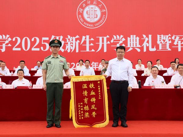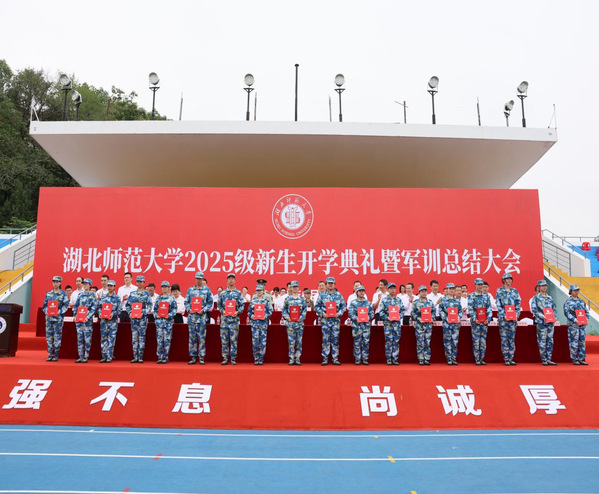 典礼上,2025级本科生代表、“优师计划”学生、马克思主义学院周伊琪同学分享了对自身“三重身份”的理解与对未来的展望。2025级硕士研究生代表、生命科学学院陈进同学讲述了自己戈壁守防的军旅生活和在湖师深耕的求学岁月,用“扎根”与新同学共话成长与担当。2025级留学生代表、经济管理与法学院苏星同学抒发了自身对中国历史文化的向往之情,希望在用心学好汉语的同时积极成为文化交流的使者。