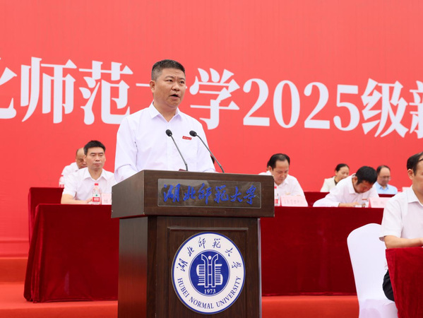 校党委副书记、校长雷儒金以《八秩薪火砥壮志 凤凰山下启新程》为题寄语新生。他代表学校党委、行政及全体师生员工向来自全国和世界各地的4939名新同学表示热烈欢迎。他回顾了学校在学科建设、人才培养等方面取得的丰硕成果,在介绍国家发展大势和学校建设蓝图中指明新一代湖师青年必将与国家发展、民族复兴紧密联系在一起,是生逢其时、不负盛世的一代。他勉励新生要弘扬伟大抗战精神,在国家和人民需要的关键时刻站得出、挺得直、能战斗,做有理想、有格局的“强国栋梁”,扎根人民、奉献国家;做有修为、有韧劲的“时代青年”,品德高尚、内核强大;做有智慧、有作为的“学习先锋”,独立思考、善于实践。他祝愿新生在学校过得充实快乐,在创新创造中给祖国“上大分”、在实践锻炼里为自己“升技能”,努力成长为堪当民族复兴大任的时代新人。