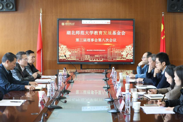本网讯 10月22日上午,湖北师范大学教育发展基金会第三届理事会第八次会议在科技大楼505会议室召开,会议以“线上+线下”相结合的形式进行。校党委副书记、副校长、理事会理事长余涛出席会议并讲话,校党委常委、副校长、理事胡艳军出席会议。基金会第三届理事会、监事会成员,校友工作处及基金会秘书处相关人员参加会议。会议由基金会秘书长刘洋主持。