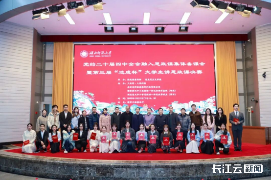 12月12日,湖北师范大学在教育大楼报告厅隆重举行党的二十届四中全会融入思政课集体备课会暨第三届“达成杯”大学生讲思政课决赛。此次活动由人民网·人民科技、北京优师致远教育公司、湖北省大中小学思政课一体化改革试点(黄石)联合协办。吸引了众多教育领域嘉宾与师生参与,为思政教育创新发展注入新活力。