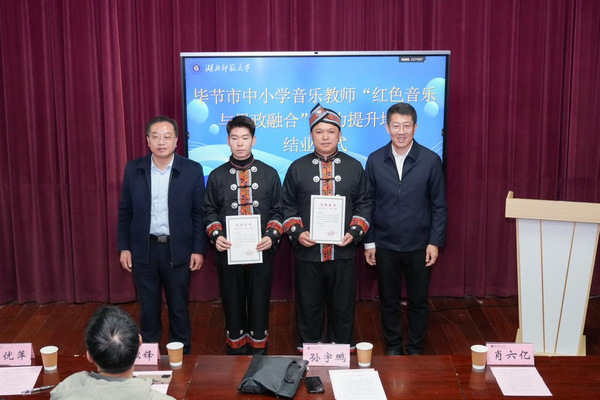 12月23日,结业仪式在湖北师范大学举行,致公党中央社会服务部副部长孙宇鹏、湖北师范大学党委常委、统战部部长长肖六亿等出席。孙宇鹏充分肯定了鄂黔两地教育协作的丰硕成果,回顾了双方从框架协议签订到附属学校共建的系列合作历程,并对参训教师提出三点希望:一是坚守教育初心,让红色音乐浸润学生心灵;二是坚持终身学习,锤炼过硬教学本领;三是发挥示范作用,形成“一人参训、全员受益”的辐射效应,带动区域音乐教育提质增效。学员代表、毕节市七星关区阴底中学教师宋家贵表示,培训课程兼具理论深度与实操价值,今后将把所学融入教学,让红色旋律在毕节校园代代相传。