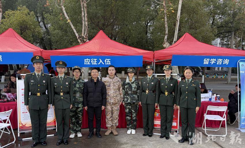 “特意选择在招聘会期间开展征兵宣传,就是为了让同学们在规划未来时,把参军入伍纳入重要考量选项。”湖北师范大学武装部负责人表示,这种“招聘+征兵”同步推进的模式,打破了传统宣传壁垒,实现了就业服务与国防教育的有机融合。