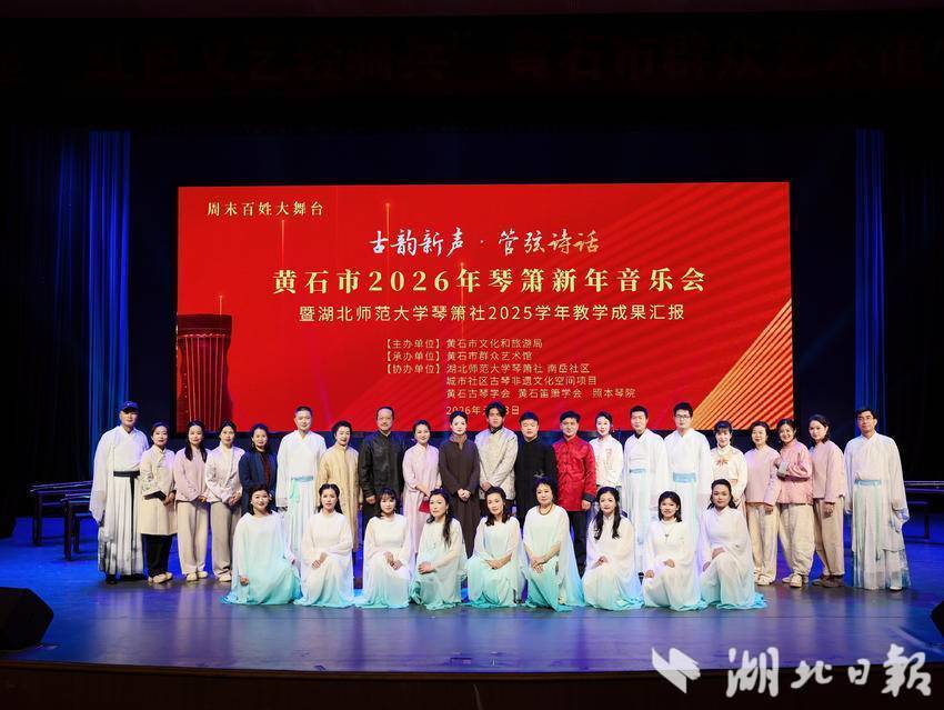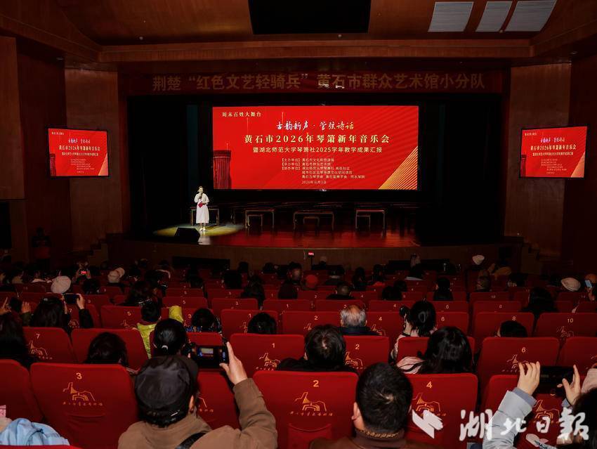 湖北日报客户端讯(通讯员陈诚)2026年1月3日,黄石市群众艺术馆小剧场内琴箫悠扬、座无虚席。一场别开生面的“古韵新声·管弦诗话”新年音乐会在这里举行,吸引了不少市民带着家人前来感受穿越千年的非遗韵律。
