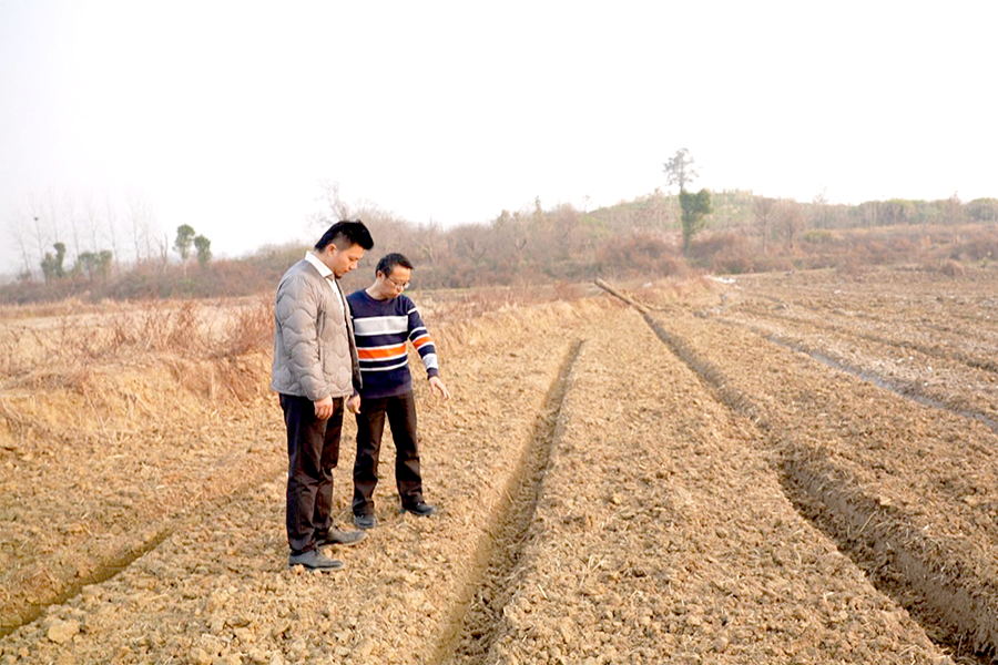 浠水县长福水稻专业合作社工作人员 王松林:今天撒石灰是为了给土地消毒,6亩地基本上撒完了。