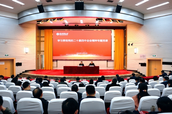 本网讯 为深入学习宣传贯彻党的二十届四中全会精神,切实把思想和行动统一到党中央决策部署上来,1月13日,校党委书记李宏以“深入学习宣传贯彻党的二十届四中全会精神,把全会精神转化为干事创业的强大动力”为题,为全校党员干部讲授专题党课。全体在校校领导,全校副处级以上干部现场参加授课活动。校党委副书记、校长雷儒金主持党课并作总结讲话。