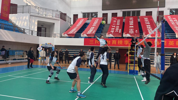 我校教工队在比赛中表现突出,凭借默契的配合,扎实的拦网技术和强有力的进攻,在小组循环赛和淘汰赛中一路稳扎稳打,最终摘得桂冠。场上精彩的传球、扣杀和拦网,引得现场观众阵阵喝彩,比赛的气氛热烈高涨。