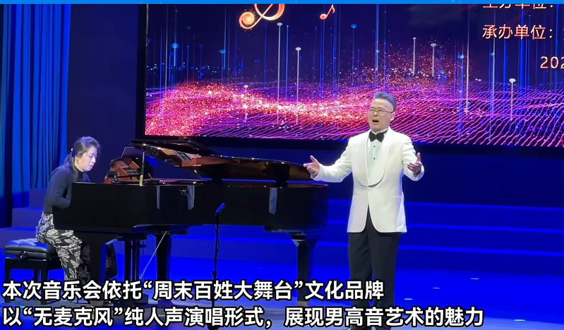 音乐会全程无麦克风、无扩音设备,以最本真的人声穿透全场,在黄石尚属首创。乐汉宁、钟家明、刘盛昌三位艺术家功底深厚、声线嘹亮,倾情演绎中外经典名曲,旋律优美、歌声动人,尽显声乐艺术的独特魅力。在音乐会尾声时,钟家明等三大男高音齐声唱响《我爱你中国》,高亢深情的旋律点燃全场热情,台下观众自发合唱,台上台下歌声交融、情感共鸣,将气氛推向最高潮,为整场演出画上圆满句号。