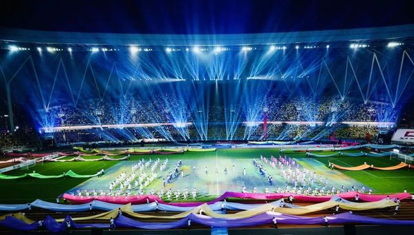 4月12日晚,湖北银行2026年湖北省城市足球联赛在黄石市激情启幕,近三万名观众共同见证了这场融合科技、艺术与文化的视觉盛宴。