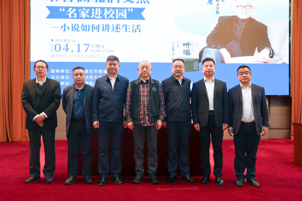 本网讯 4月17日上午,2026年黄石市全民阅读活动周之“名家进校园”刘醒龙文学讲座在我校教育大楼报告厅举行。茅盾文学奖、鲁迅文学奖获得者,湖北省文联名誉主席刘醒龙应邀到校,作专题文学创作报告。黄石市委宣传部副部长、黄石市社科联党组书记艾永晴,校党委副书记马列军,黄石市新华书店支部书记、经理胡涛,黄石市委宣传部新闻出版科负责人曹小卉,校宣传部、图书馆负责人,师生代表与文学爱好者到场参加。活动由校图书馆馆长陈雄文主持。