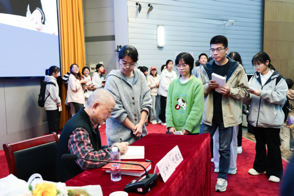 刘醒龙的报告观点鲜明、内涵深刻、语言平实,兼具思想性与实践性,赢得现场阵阵掌声。互动交流环节,他逐一解答学生提问,现场氛围热烈。活动现场,黄石市新华书店向湖北师范大学图书馆捐赠刘醒龙多部文学作品,并举行图书签赠活动,师生踊跃参与。