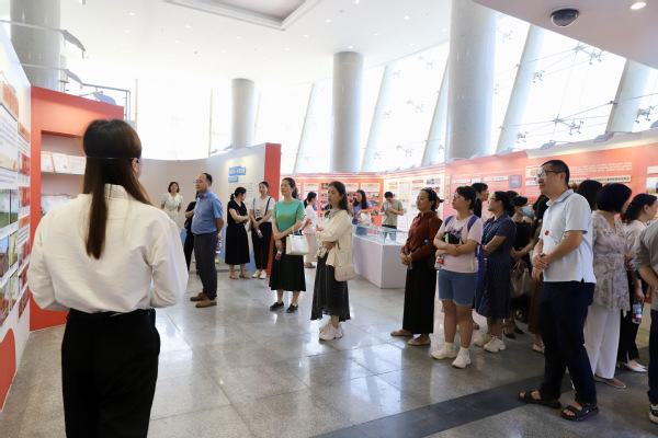 大家首先参观了学校建校50周年办学成就展,通过讲解员的详细解说、展陈的老照片及实物档案,专兼职档案员们对学校四易校名、“从无到有、从挂靠到自办、从市属到省属、从学院到大学”的四次跨越有了更清晰的认识,对学校构建起了更鲜活的记忆。