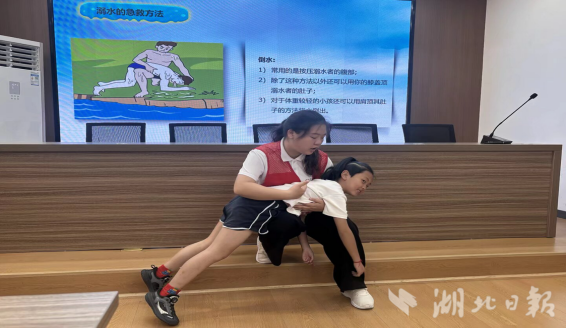 湖北日报客户端讯(通讯员李贤娇) 7月22日,湖北师范大学历史文化学院“禾下追梦”实践队深入黄石港区红旗桥社区暑期学堂,开展“暑期防溺水,安全不放假”特色课程,组织了孩子们观看防溺水动画片,让社区儿童了解到一些防溺水应对小妙招。