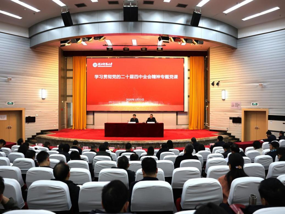 雷儒金在总结讲话中强调,全校上下要以此次党课为契机,深入学习领会、全面贯彻落实党课精神,切实把学习成效转化为推动学校高质量发展的实际成果。一要在学深悟透上下功夫,将学习党的二十届四中全会精神与省委十二届十一次全会精神、学校“十五五”规划相结合,通过多种形式掀起学习宣传热潮,凝聚共识与力量;二要在对标对表上求实效,主动对接教育强国、科技强国、人才强国建设要求,聚焦学科优化、人才培养、科研创新等关键任务,在服务全省发展大局中展现担当;三要在压实责任上见真章,各级党组织要扛起主体责任,将学习贯彻与年度考核相结合,以高度的责任感和执行力确保各项部署落地生根,为学校发展汇聚强大动能。