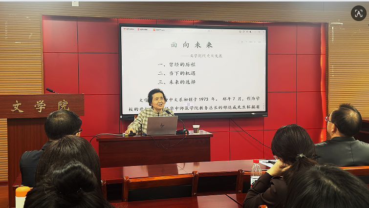 本网讯 春晖映照,薪火相传。4月2日下午,校关工委副主任、丹心银龄学者工作室团队成员吴瑞霞教授应邀走进文学院,以《面向未来》为题,为文学院青年教师及学者带来专题分享。这是银龄学者“讲院史谈湖师精神”系列活动在2026年的首场活动。