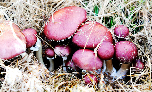 走近试点田,只见以前的“废稻草”上长出了肥墩墩的小蘑菇,“长相”颇有特色,表面暗红,根茎粗壮,发现一个,扒开就是一大片。据介绍,这种蘑菇叫大球盖菇,不仅可利用稻草等作物秸秆培植,其农作物秸秆被大球盖菇菌丝分解后,菌渣还田后还能增加土壤肥力,实现物质循环利用。